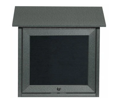 Plastic lumber letter board message centerTop hinged doorFull length piano hinges18″H x 18″WWall mountedBlack letter board Lockable, includes (2) keysSet of 3/4″ Helvetica letters and assoOverall board size is not actual size of usable board space Space may be lost due to type of frame, illumination, and header of boardFor exact sizes please call our customer service department.