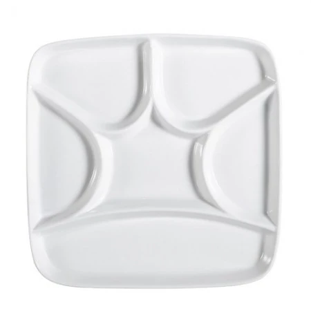 Product Details for CAC China Square Crown Porcelain Compartment Tray 8-1/2″