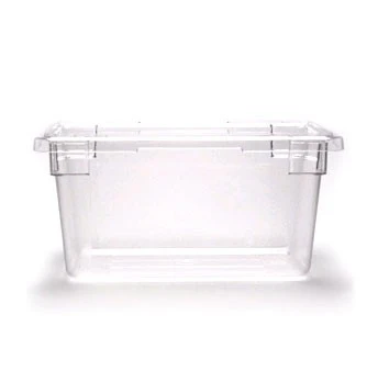 12″ x 18″ x 9″ Camwear Polycarbonate Clear Food Storage Box4.75 gallon capacityColor: clearDishwasher safeSmooth surfaceEasy to cleanNSFCan withstand extreme temperaturesSnap-tight covers available