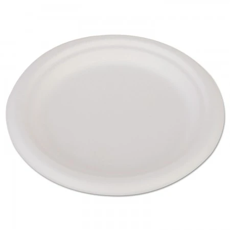 This ChampWare(TM) Tableware features a heavyweight molded fiber that is made of bagasse, a renewable resource. Grease and moisture resistant, this chlorine-free plate features a plastic coating. This white plate is extremely versatile for restaurants and measures 6″ in diameter. Available in quantities of 1,000 per box.