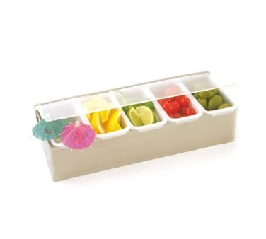 Use the Crestware SCD6 6 Box Condiment Dispenser to store garnishes and more at your bar or restaurant. Designed with a clear, high impact plexiglass lid, this condiment dispenser offers easy visibility so you can quickly identify the contents without opening the lid.