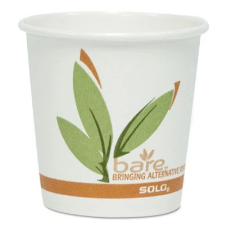 Bare by Solo Eco-Forward Recycled Content PCF Paper Hot Cups, 10 oz, 1,000/Ct. The first-ever FDA compliant PCF paper cups. Made from a minimum of 90% plant-based renewable resources and a minimum of 10% post-consumer recycled fiber. Features environmental Bare® by Solo® design and common lid fit. Cup Type: Hot; Capacity (Volume): 10 oz; Material(s): Poly-Coated Paper; For Use With: SOLO® LB3101.