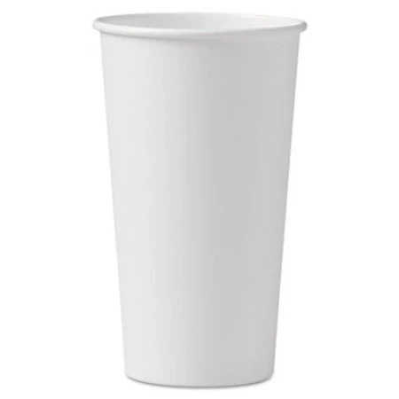 Polycoated Hot Paper Cups, 20 oz, White, 600/Carton. Polycoated paper cups are designed to hold hot beverages. Heat-sealed seams and interlocked bottoms prevent leaks and help retain heat. Excellent for serving coffee, tea, hot chocolate or just about any hot beverage. Cup Type: Hot; Capacity (Volume): 20 oz; Material(s): Paper; Color(s): White.