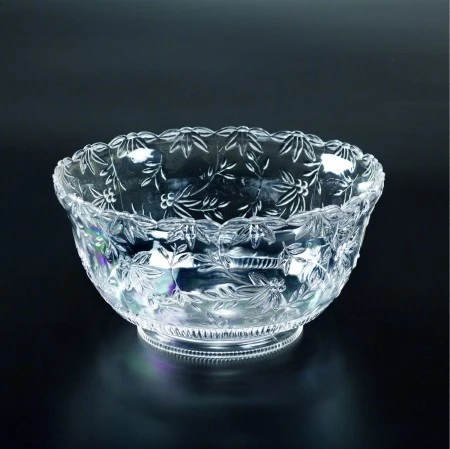 Combining functionality and style, this premium resposable bowl boasts an attractive scalloped rim that keeps a ladle from sliding in and adds a classic touch to any setting. Made from clear polystyrene, this punch bowl is break-resistant and allows for fast product identification.