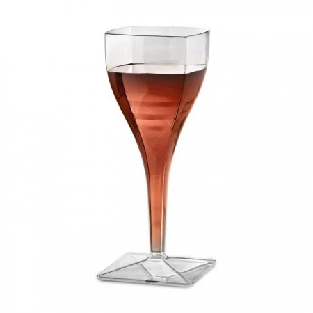 Thanks to it flat, square base, this wine glass sits flatly on any tabletop reducing the risk of tipping. Made from polystyrene, this premium resposable wine glass can be cleaned and reused or disposed of when fast cleanup is desired.
