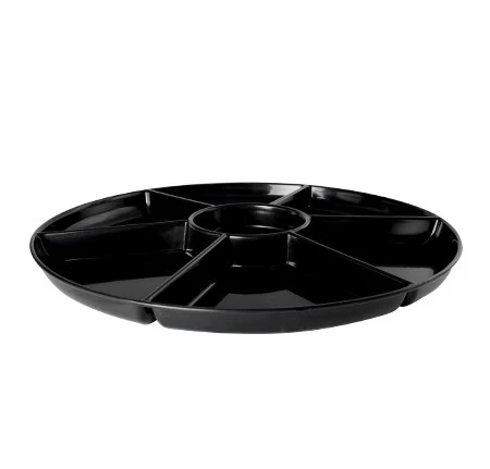 Product Details for Fineline Settings Platter Pleasers Black Plastic Low 7-Compartment Tray 16″