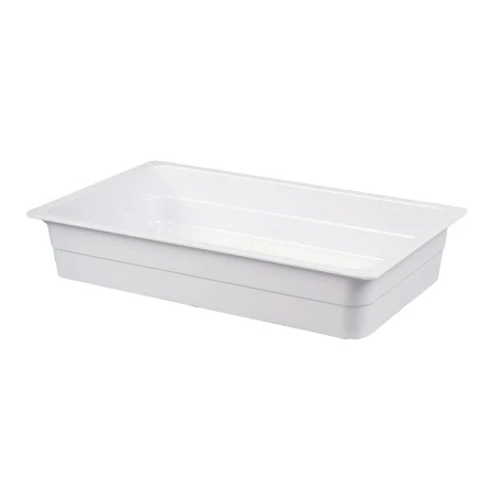 Its pristine white color and clean design will surely enhance the appeal of your food presentation while easily complementing any setting. Made from exceptionally durable melamine, this food pan is chip-, crack-, and break-resistant for years of reliable use. For utmost convenience, this affordable full size food pan is dishwasher safe for quick cleanup and is stackable for space-saving storage. This food pan conforms to Gastronorm specs.