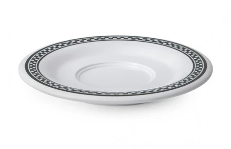 The GET Enterprises SU-2-X Diamond Chexers Melamine Saucer 5-1/2″ is an excellent pair for cups and mugs. Boasting a pristine white background and a black checkerboard design, this saucer adds a contemporary touch to any table setting.