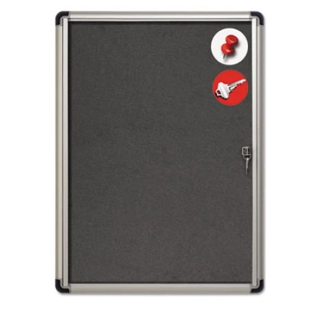 Enclosed Fabric Bulletin Board showcases information in a beautiful way. Clear, locking door provides security and protection. Perfect for menus, schedules, timetables and other vital posting. Features include an anodized aluminum frame, a fire-retardant felt surface and a strong acrylic door. One Door. Board Type: Bulletin; Board Width: 28″; Board Height: 38″; Board Depth: 1 3/8″.Fabric bulletin board surface.Strong acrylic, locking door.Anodized aluminum frame.Wall-fastening kit included.