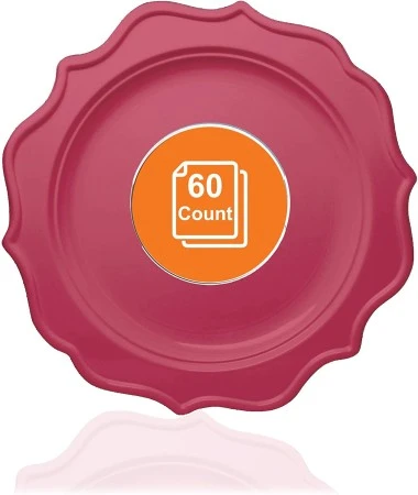 Product Details for TigerChef Fuchsia Scalloped Rim Disposable Appetizer Plates 8″, 60/Pack