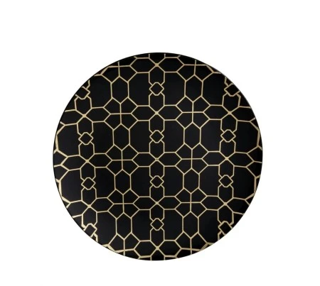 Product Details for TigerChef Gold Geo Pattern Black Plastic Dinner Plate 10-1/4″