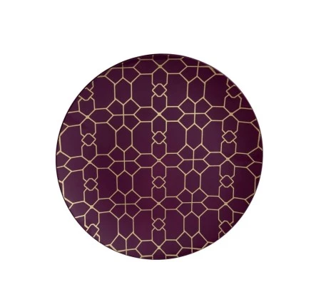 Greet your guests in style without breaking the bank with the TigerChef Gold Geo Pattern Purple Plastic Appetizer Plate 7-1/4″. Perfect for upscale events, wedding receptions, and more, this piece features stunning gold geo pattern set on an eye-catching purple backdrop.