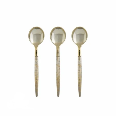 Emulating the beauty and elegance of fine cutlery without breaking the bank, TigerChef Gold Glitter Two Tone Plastic Mini Spoons are a great addition to intimate dinners, engagement parties, and other upscale functions. Boasting a dazzling metallic gold glitter shade, these disposable spoons are a practical and affordable alternative to real silverware. Designed with a comfortable round handle, these spoons are perfect for serving mini cakes, ice cream, and other desserts.