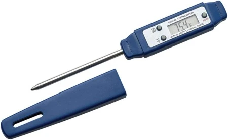 Equipped with a 2-3/4″ long metal probe, it easily punctures delicate meat while its waterproof rating allows it to withstand steamy environments and splashes. For quick and convenient reading, this waterproof digital thermometer has a 7/8″ digital LCD display.