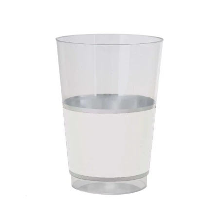 Product Details for TigerChef White with Silver Band Plastic Cups 12 oz.