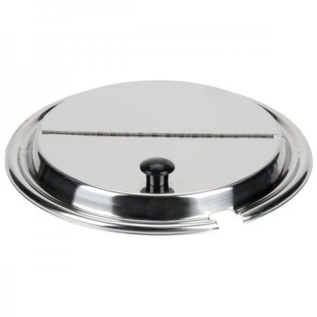 For easy one-handed operation, it features a black heat-resistant Kool Touch phenolic handle to easily access soups, gravies, and sauces. The stationary side has welded clips to hold it securely in place. Made from rust resistant stainless steel, this mirror finished hinged inset cover is easy to clean and exceptionally durable.