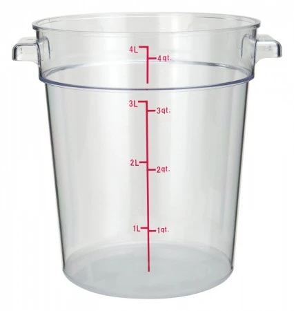 The Winco PRC-4 Round Storage Container 4 Qt. is a versatile piece that is great for storing spices, sauces, and other ingredients. A staple in any commercial kitchen, this container features a translucent design for easy visibility while its built-in handles provides a secure grip.
