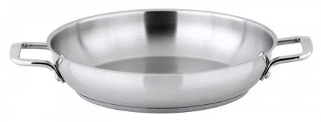 Premium stainless steel constructionCommercial qualityHelper handles with 6-point weldingTri-ply bottomInduction readyNSF listedDimensions: 12 1/2″ x 2 1/4″