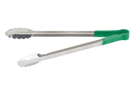 Product Details for Winco Stainless Steel Utility Tongs with Green Polypropylene Handle, 16″